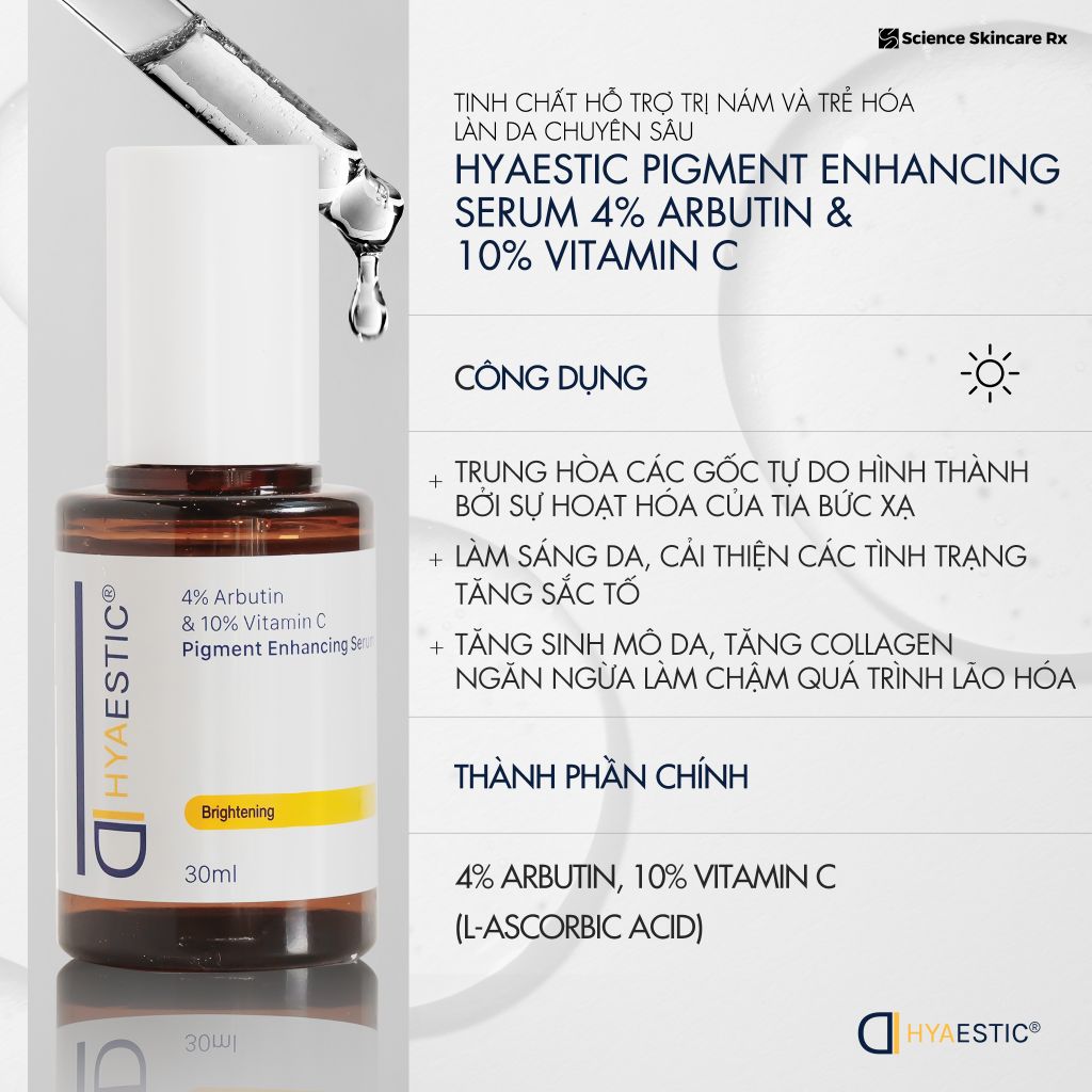 Tinh chất hỗ trợ trị nám và trẻ hóa làn da chuyên sâu Hyaestic Pigment Enhancing Serum 4% Arbutin & 10% Vitamin C