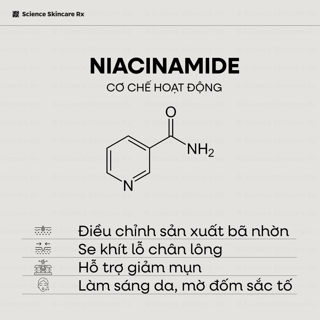 Thông qua cơ chế ngăn sản xuất bã nhờn quá mức, Niacinamide cũng giúp giảm thiểu sự hình thành và phát triển của mụn trứng cá.