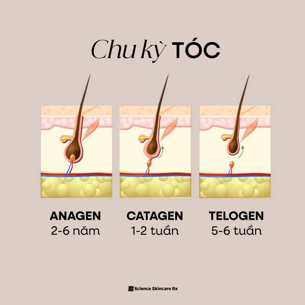 - Telogen (Giai đoạn nghỉ): Kéo dài từ 2-3 tháng, sau đó tóc rụng và sợi mới bắt đầu mọc lại.