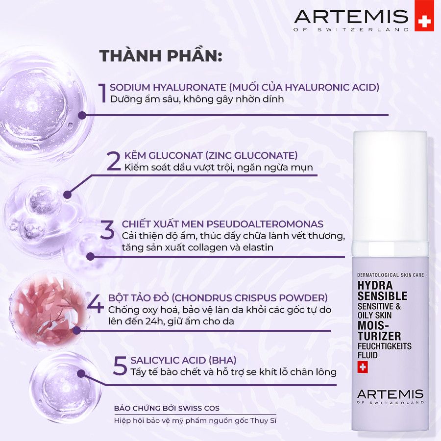 ARTEMIS HYDRA SENSIBLE Sensitive & Oily Skin Moisturizer là sản phẩm dưỡng ẩm dạng kem gel nhẹ thoáng được thiết kế chuyên biệt cho làn da dầu & hỗn hợp, có khả năng cân bằng độ ẩm giữa các vùng da dầu & khô, đồng thời dưỡng ẩm dài lâu và bảo vệ làn da khỏi tác hại của gốc tự do lên đến 24 giờ. Với công thức cải tiến giúp điều tiết lượng bã nhờn dư thừa trên da, hỗ trợ thu nhỏ lỗ chân lông và giảm thiểu tình trạng da bóng nhờn. Làn da ngay lập tức trở nên mịn màng và tươi tắn rạng rỡ hơn.