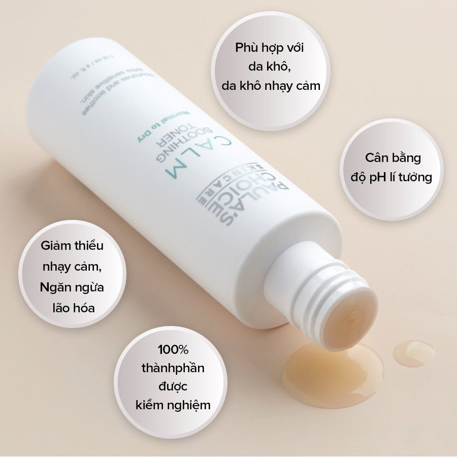 - Paula's Choice CALM Redness Relief Toner For Normal to Dry Skin là nước cân bằng da dạng sữa lỏng thích hợp cho da từ thường đến khô & nhạy cảm, giúp làm dịu làn da nhạy cảm & mẩn đỏ sau khi rửa mặt, đồng thời dưỡng ẩm da.