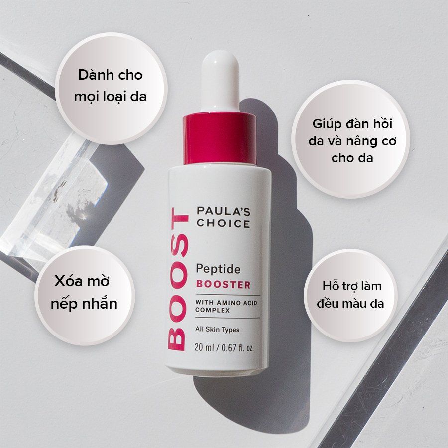 • Paula's Choice Peptide Booster là tinh chất tăng cường với 8 loại peptide tập trung sức mạnh trong một sản phẩm, giúp đẩy lùi lão hóa, cải thiện độ săn chắc và làm đều màu da một cách nhanh chóng.
