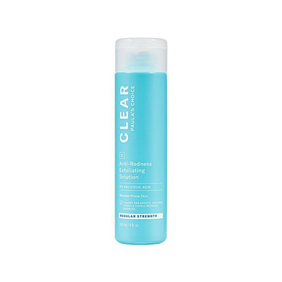 • Paula's Choice CLEAR Regular Strength Anti Redness Exfoliating Solution With 2% Salicylic Acid là dung dịch tẩy tế bào chết hoá học dịu nhẹ với thành phần Salicylic Acid giúp loại bỏ mụn từ nhẹ đến trung bình, làm thông thoáng và thu nhỏ lỗ chân lông, mờ thâm đỏ do mụn để lại.