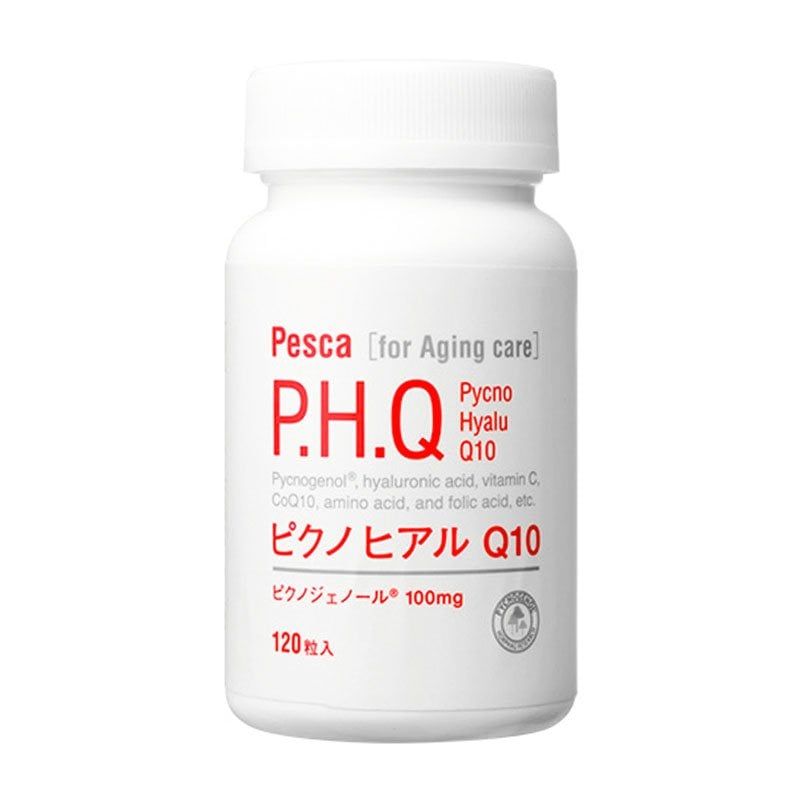 • Pesca P.H.Q Pcyno Hyalu Q10 là viên uống bổ sung giúp ngăn ngừa, giảm thiểu tác hại của tia UV trong ánh nắng mặt trời gây tổn thương da, bảo vệ làn da từ bên trong, đồng thời cung cấp dưỡng chất nuôi dưỡng cho da khoẻ mạnh, sáng đẹp mịn màng, ngừa lão hoá sớm.